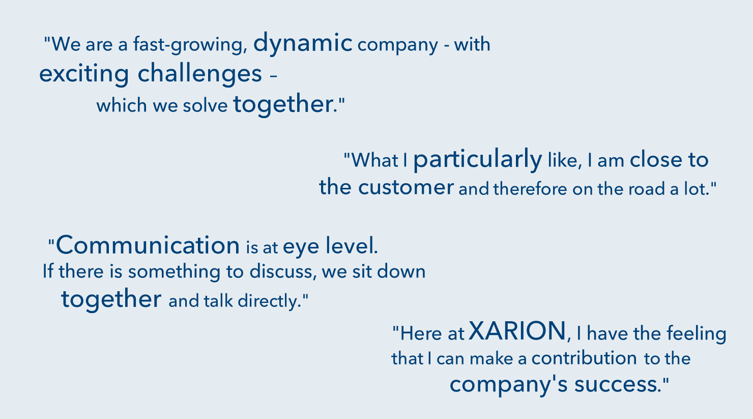 We are looking for exceptional, highly motivated individuals who share our desire to make XARION's vision a success. In addition to an attractive performance-based compensation, you can expect a high degree of autonomy, flexibility, and responsibility from day one. You can also expect to play a key role on a team of outstanding individuals.
