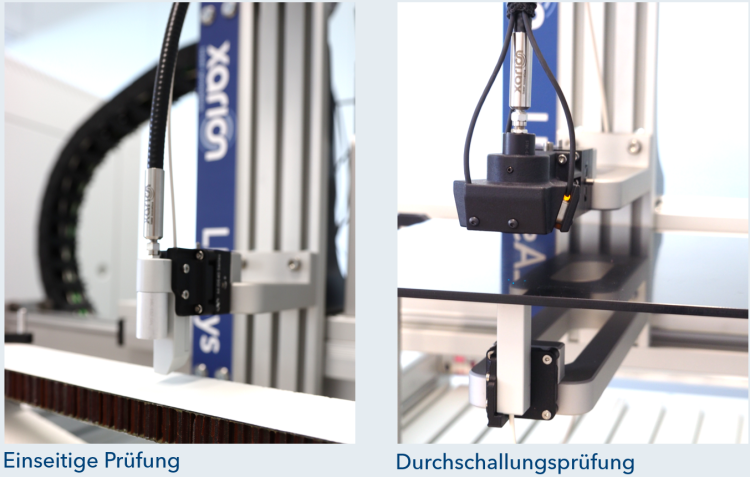 XARIONs Optisches Mikrofon detektiert das von der Probe transmittierte oder reflektierte Ultraschallsignal. Mit Hilfe einseitiger Prüfung (Pitch-Catch oder Puls-Echo) oder Durchschallungsprüfung können interne Defekte, Delaminationen und Porosität, aber auch z.B. Schweißpunktdurchmesser berührungsfrei detektiert werden.